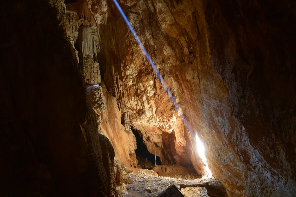 UN FASCIO DI SOLE CHE ILLUMINA IL BUIO DELLA GROTTA
